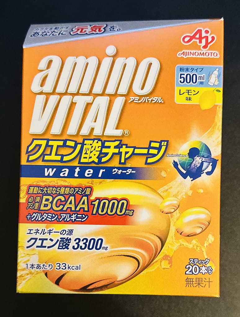 またホテルに行ってもミネラルウォーターがアメニティとしてあるので、これを活用しない手は無いと思って水に溶かすアミノバイタルの粉末に目を付けました。