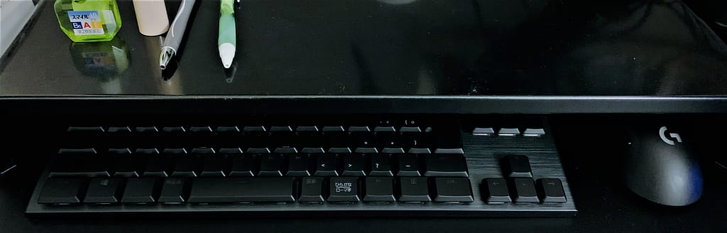 実際にコロ助のデスク上もキーボードとマウスが同じスペースに収納できるようになったのでかなりスッキリしました。