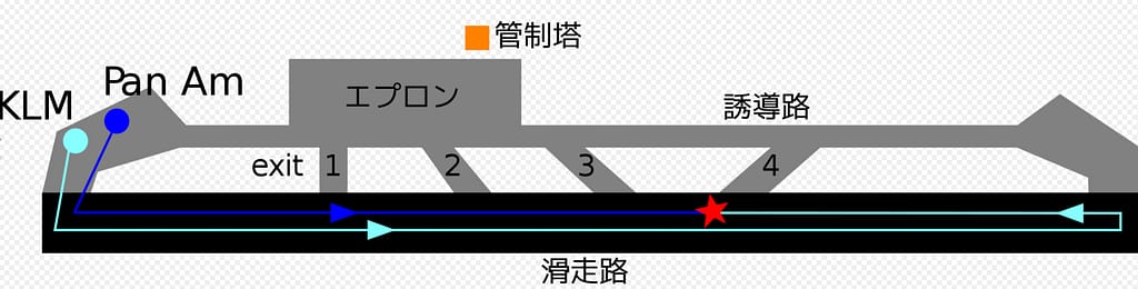 そして4番目誘導路付近で滑走路を離脱しようとしていたパンナム機と衝突したのです。