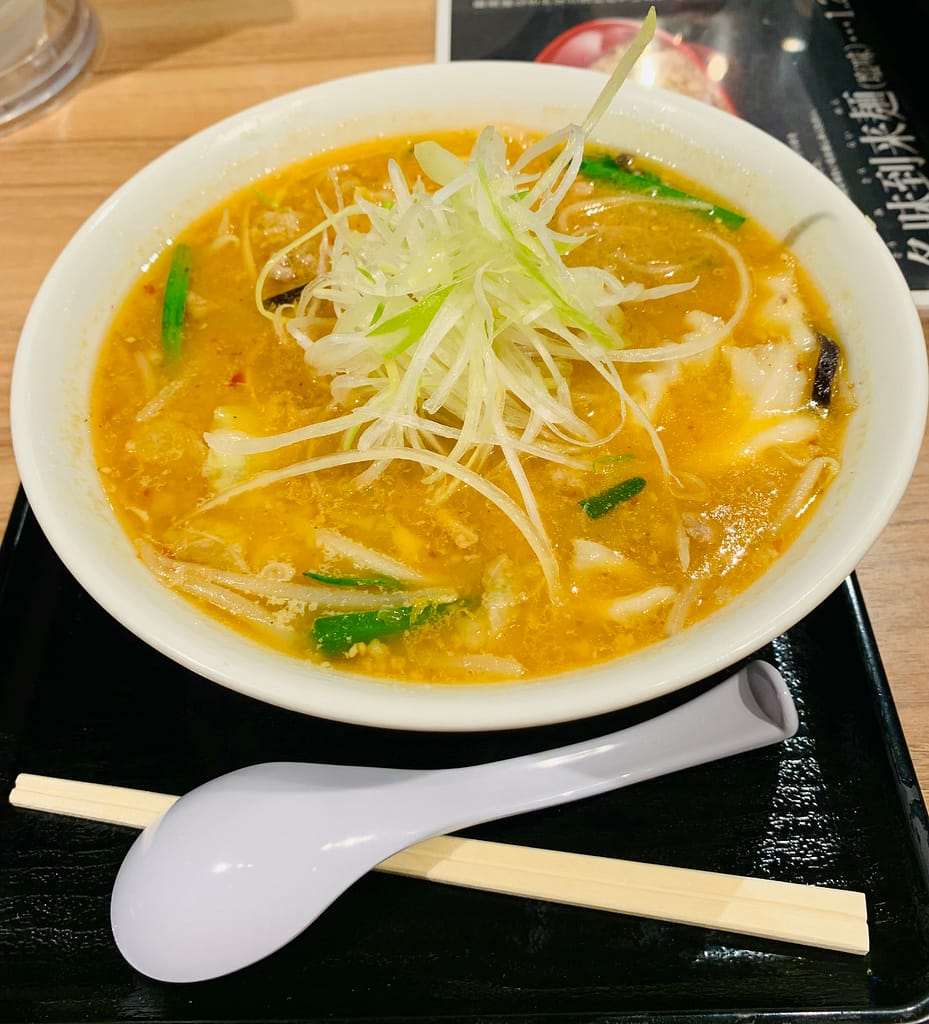 上に乗っている白髪ねぎ、スープの色合い、極めつけは箸とレンゲの並べ方。