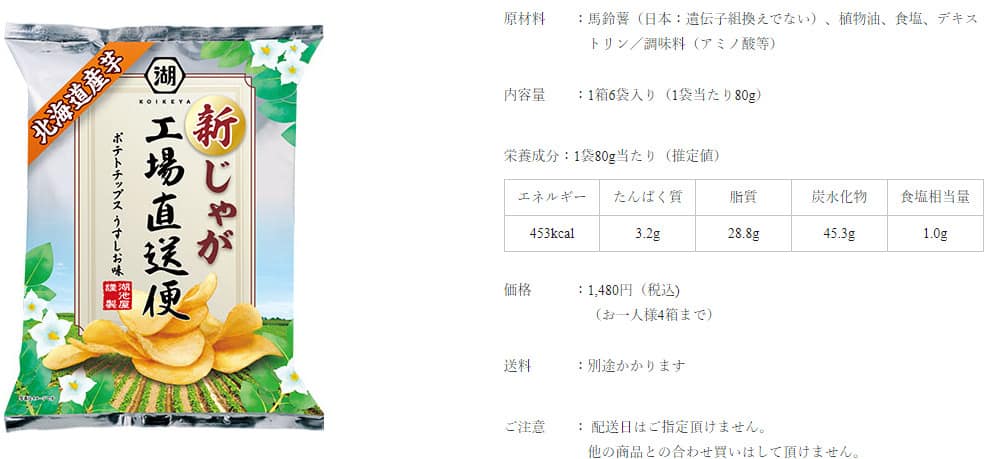 先ほども書いたように贅沢と言われるポテチは出来立てなんですが、実際はどのような内容の商品なのでしょうか。