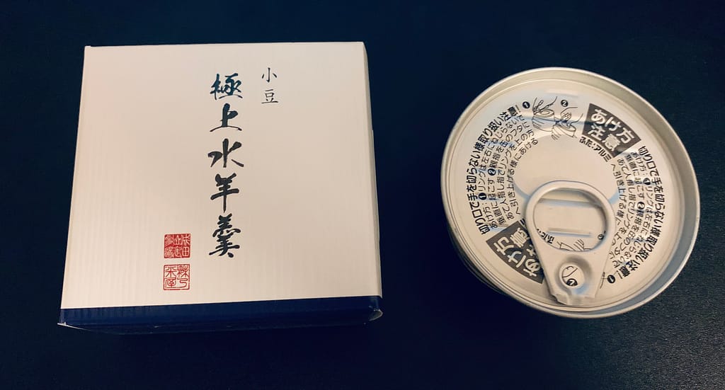 甘い方はなごみの米屋さんが販売している「小豆 極上水羊羹」です。