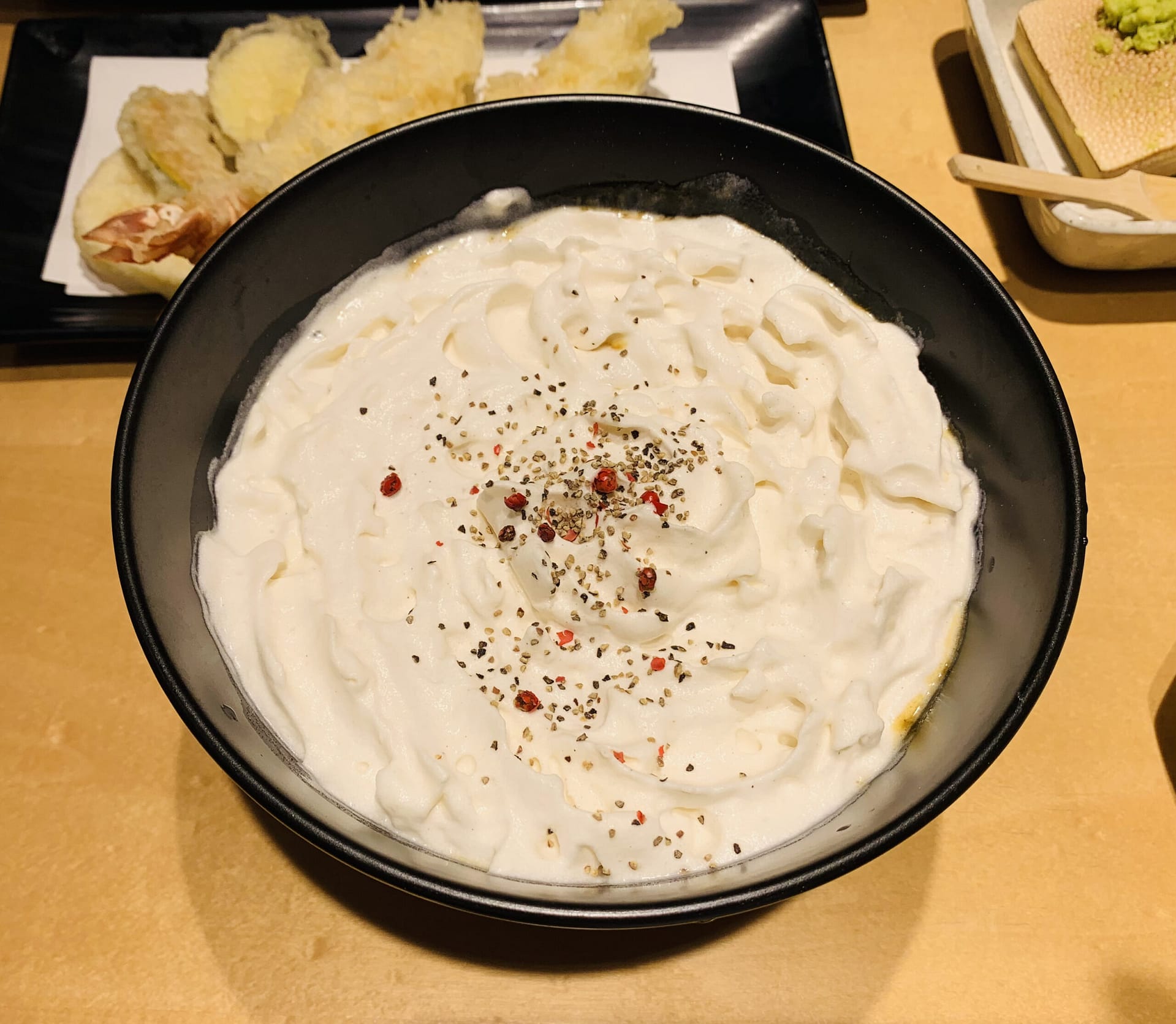 それから10分ほどで白いカレーうどんと天ぷら蕎麦が到着です。