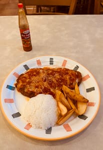 日本ならカツの衣はサクサクなものが大半だと思いますが、ここのパルミジャーノはブラジルの本場料理ですので日本とは違い、衣にはソースが染みているのでサクサクではありません。