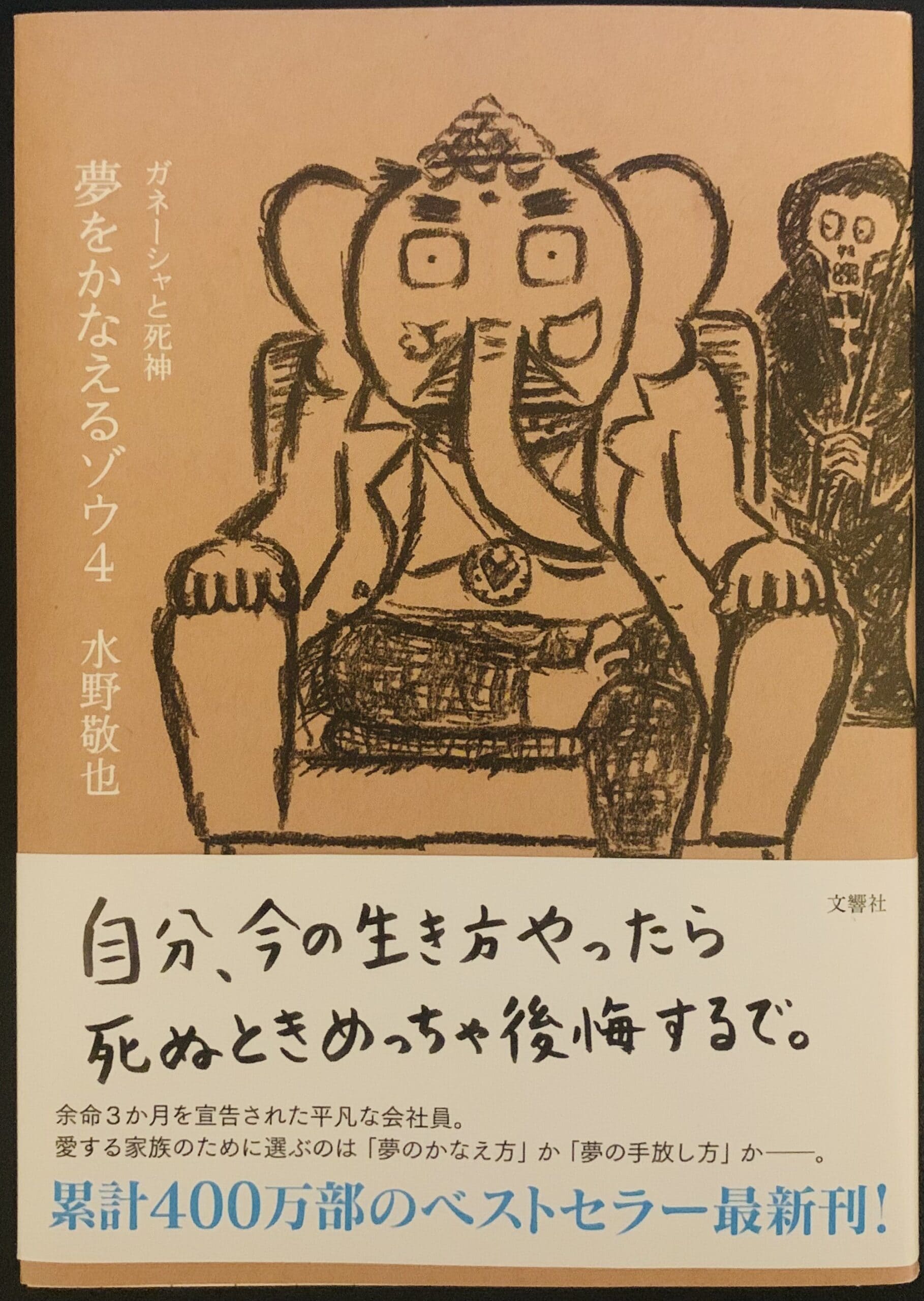 というのも、今回読んだ「夢をかなえるゾウ4~ガネーシャと死神~」が読みやすい上に、話が面白くて3週間ほどかけて読むつもりが、止まらなくなってしまい4日ほどで読んでしまったからです(笑)